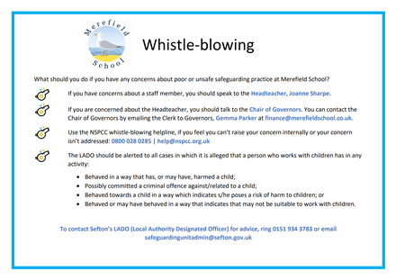 Merefield School is committed to safeguarding and promoting the welfare of children and young people and expects all members of the school community to share this commitment.