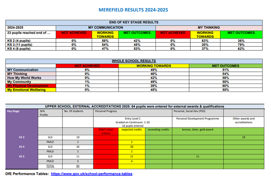 Please click on the link below to view Merefield School's performance tables.